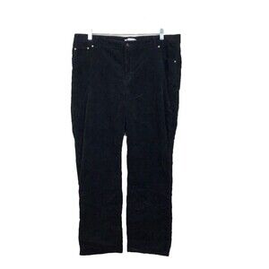 Woman Within Corduroy Black Pants Plus Size 18W Stretch Straight Leg Button Zip