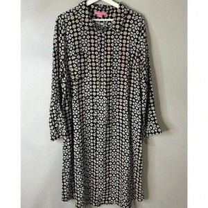Woman Within Dress, Black Color Pattern Long Sleeve Plus, Size 18W, Maxi Dress