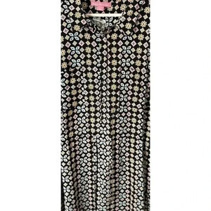 Get ready to make a statement with this gorgeous Woman Within maxi dress! The dress features a stunning argyle/diamond pattern in black, accented with colorful flowers. The V-neckline and button closure add to the dress's casual yet elegant look.