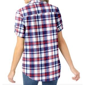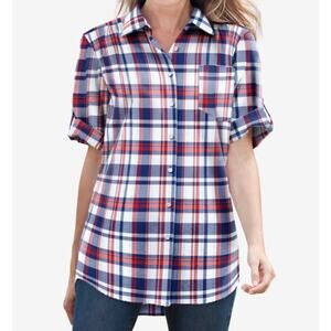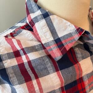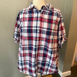 Woman Within EUC Plus Size 1XP Button Down Shirt Seersucker Red White Blue Plaid