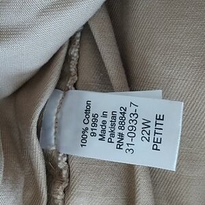 Woman Within Elastic Waist Pull On Khaki Pants 22W Petite