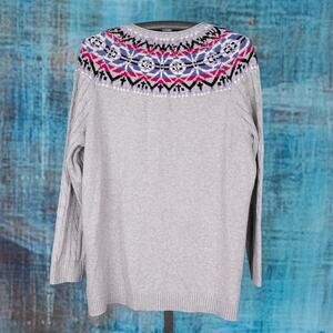 Woman Within Fair Isle Cable Knit Cardigan Sweater Size 18/20 100% Cotton Cozy