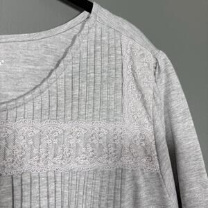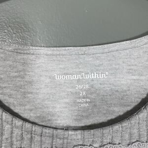 Woman Within Gray Lace Trim Cottage Boho Top - 26/28 (2X) - Women's Plus Size