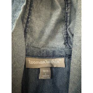 Woman Within Jacket Womens L 18/20 Blue Full Zip Hoodie Denim Jean Chore Field