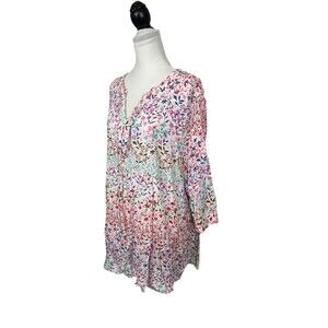 Woman Within Knit Top Blouse Plus Size 30/32 3X Multicolor Floral Pullover