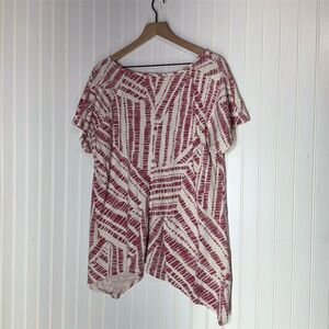 Woman Within L 18/20 Red Ivory Abstract High-Low Tunic Top Boho Asymmetrical