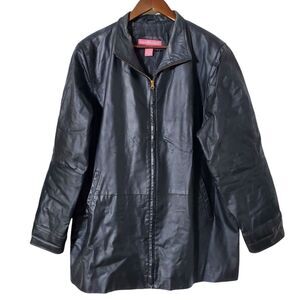 Woman Within Leather Jacket Size 18W Plus Quilted Lining Zip Up Swing Womens