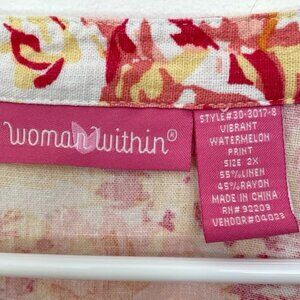 Woman Within Linen Blend Blouse Top Women's 2X Vibrant Watermelon Print