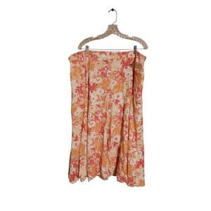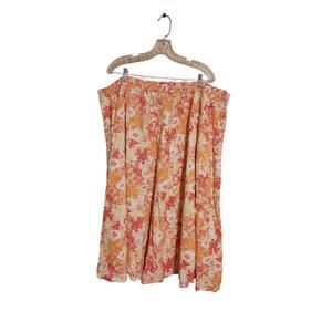 Woman Within Linen Blend Elastic Waist Pull Up Sweet Coral Floral Skirt 2X 32"L