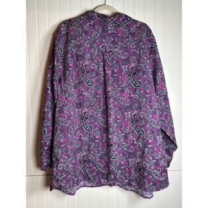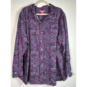 Woman Within Long Sleeve Button Front Blouse Pocket Collared Shirt 3X office