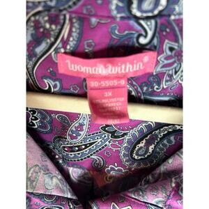 Woman Within Long Sleeve Button Front Blouse Pocket Collared Shirt 3X office business casual