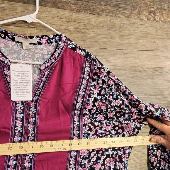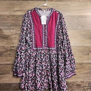 Woman Within Long Sleeve Floral Dress - Burgundy and Black