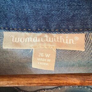 Woman Within Long Stretch Denim Jacket Jeans Medium Wash Pockets Plus Size 26 W
