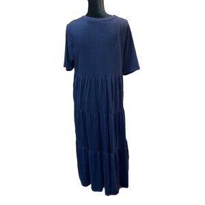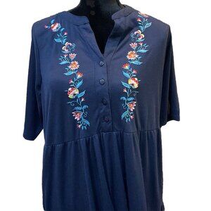 Woman Within Medium 14/16 Maxi Dress Blue Embroidered Floral Boho Cottage Travel