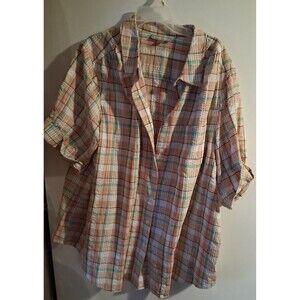 Woman Within Multicolor Plaid Short Roll Tab Sleeve Button Up Blouse Sz 26/28