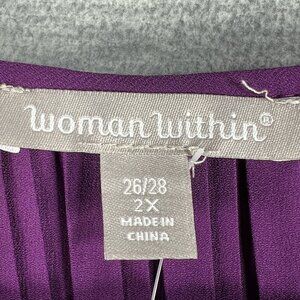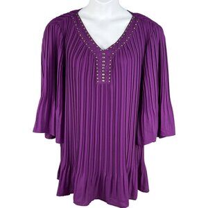 Woman Within NEW Size 2X 26-28 Purple Pleated Top Stud Embellishments Bell Sleeves Fairycore