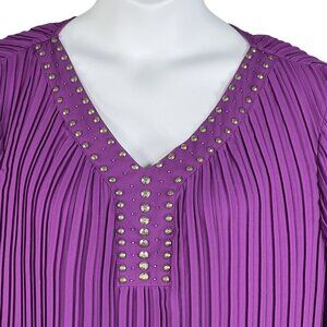 woman within top purple blouse 2x size pleated shirt v-neck top studded blouse casual wear comfortable top women’s fashion elegant top plus size fashion wide sleeve top polyester blouse