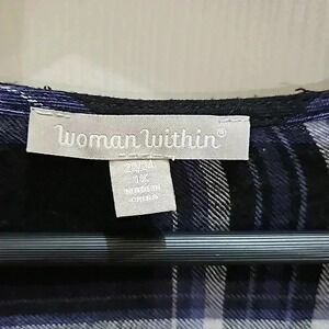 Woman Within Navy Plaid Checked Gorpcore Camping Flannel Cozycore SoftGirl Sz 1X