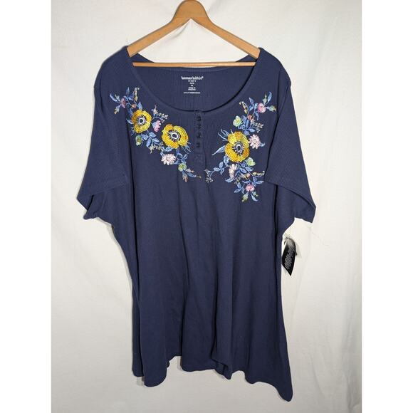 Woman Within Plus Size Navy Thermal Waffle Tunic Floral Embroidered Sz 4X. Top is new with tags.
