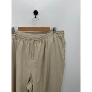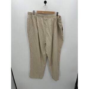 Woman Within Pants Women 28WP Khaki Tan Linen Blend Stretch Waist Loose Fit Boho