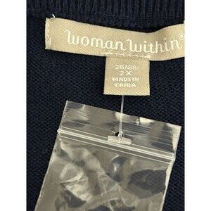 Woman Within Perfect Elbow-Length Sleeve Cardigan Navy Flower Plus Size 2X