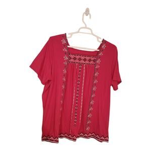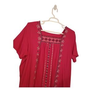 Woman Within Pink Embroidered Square Neck Tee Tunic Top Women's Size 1X NWOT
