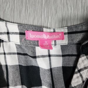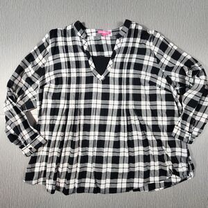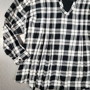 Woman Within Pleated V-Neck Blouse Plaid Blouse Size 1X 22/24