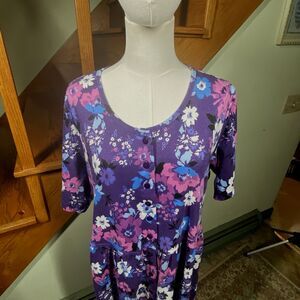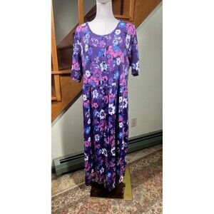 Woman Within Plus 22/24 1X Purple Floral Essential Midi Dress Cottagecore Boho