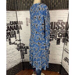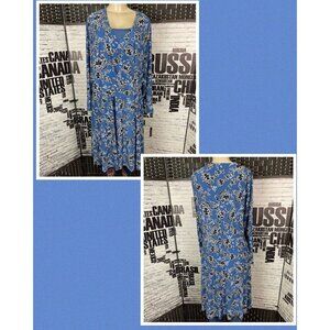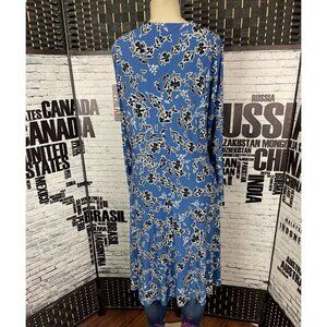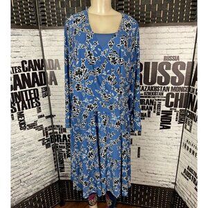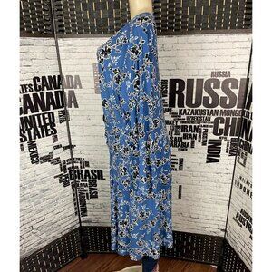 ITEM: Woman Within Plus 24W Blue Floral Print Faux Wrap Long Sleeve Below Knee Dress