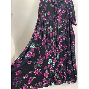 Woman Within Plus 28W Black Floral Long Button Up Maxi Dress Roll Tab Sleeve