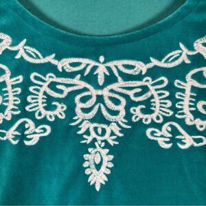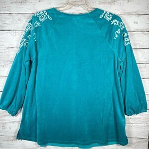 Woman Within Plus Size 14/16 M Turquoise Soft Velour Embroidered A-line Tunic Top
