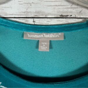 Woman Within Plus Size 14/16 M Turquoise Velour Embroidered A-line Tunic Top