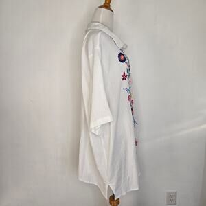 Woman Within Plus Size Embroidered Gauze Shirt Floral White Beach Summer 3X