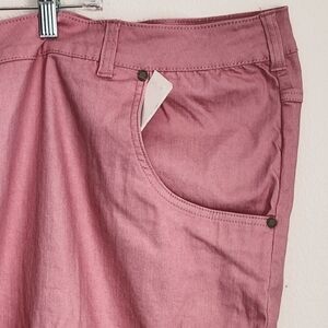 Woman Within Plus Size Pink Denim Embroidered Capris. Sz 42W (NWT)