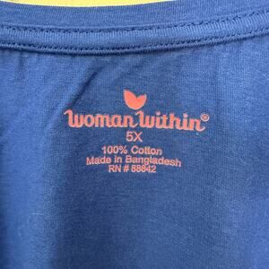 Woman Within Pullover Top Size 5X Blue 100% Cotton Scoop Neck Casual Comfort