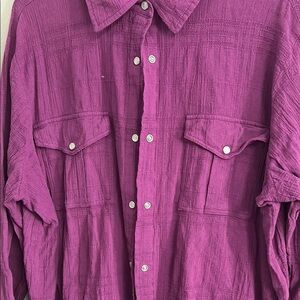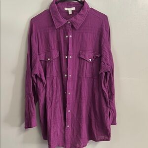 Woman Within Purple Casual Button Down Shirt