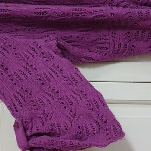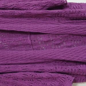 Stylish open-front cardigan. Features a textured knit design. ¾ - ½ Sleeve, open knit, drape front, medium weight. Perfect for layering.
