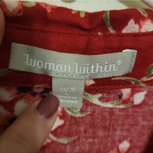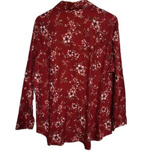 Woman Within Red Floral Print Long Sleeve Button Up Blouse, Size L