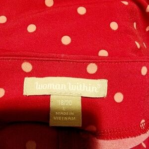 Woman Within Red Polka Dot Dress Tie Peek-a-boo Sleeves Size 18/20 Plus Size EUC