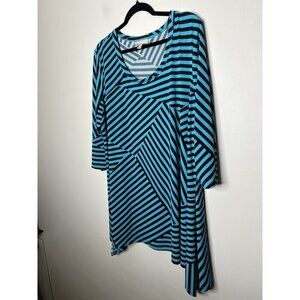 Woman Within Short Sleeve Asymmetrical Striped Top Blue Plus Size 1X 22/24