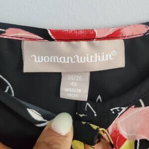 Woman Within Sleeveless Floral Button Down Shirt Top 4X