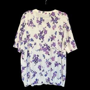 Woman Within Sweater Women Plus 18/20 Purple Floral Short Sleeve Cardigan Cotton