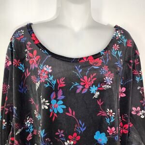 Woman Within Sweatshirt Tunic 3X Plush Velour Pullover Black Floral Long Sleeve