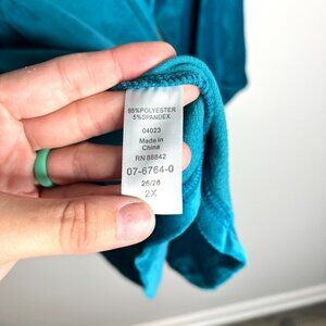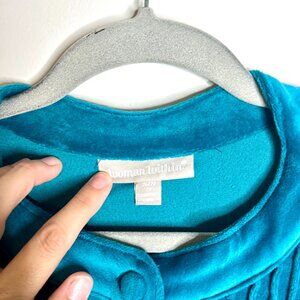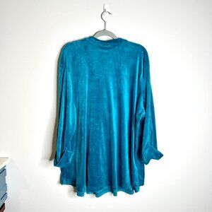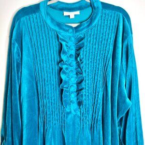 Woman Within Teal Blue Velour Velvet Ruffle Popover Flowy Blouse Witchy Sz 2X