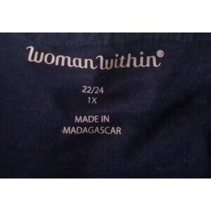 This is a Woman Within tank top in a beautiful blue color, designed for plus-size women in size 22/24. The sleeveless top features a scoop neck and a tiered design, made from a comfortable blend of rayon and cotton with stretch for added flexibility. Perfect for casual wear, this top offers a stylish and flattering look for everyday use.