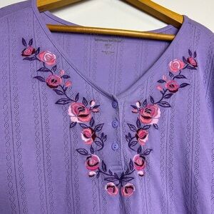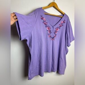 Woman Within Top Blouse Plus Size 3X Purple floral Short Sleeve Thermal Stretch