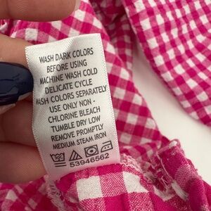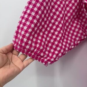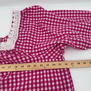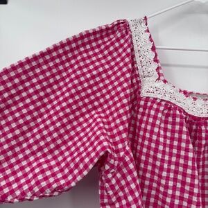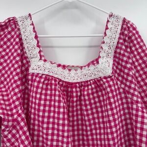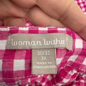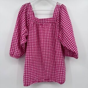 Style: Woman Within Top Women 3X Pink Gingham Cottage Embroidered 3/4 Sleeves Square Neck