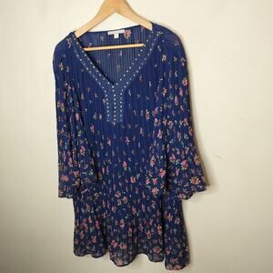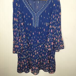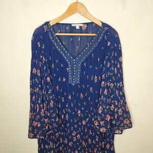 Woman Within Tunic Pleated Floral Flare Sleeve Embellished
