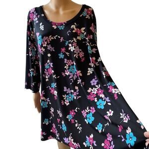 Woman Within Tunic Top 2X Floral Asymmetrical Hem Cottage Boho Fairy Lagenlook