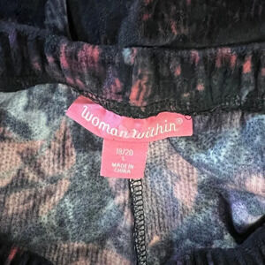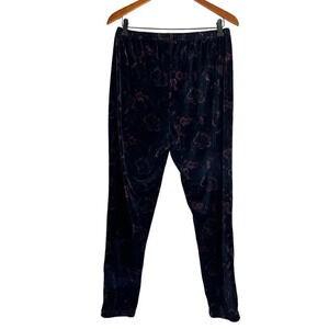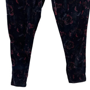 Woman Within Velour Floral Skinny Pants Size 18/20 Large Elastic Waistband Black